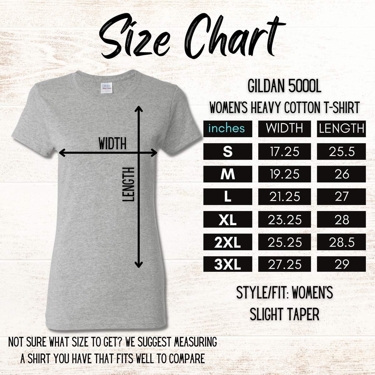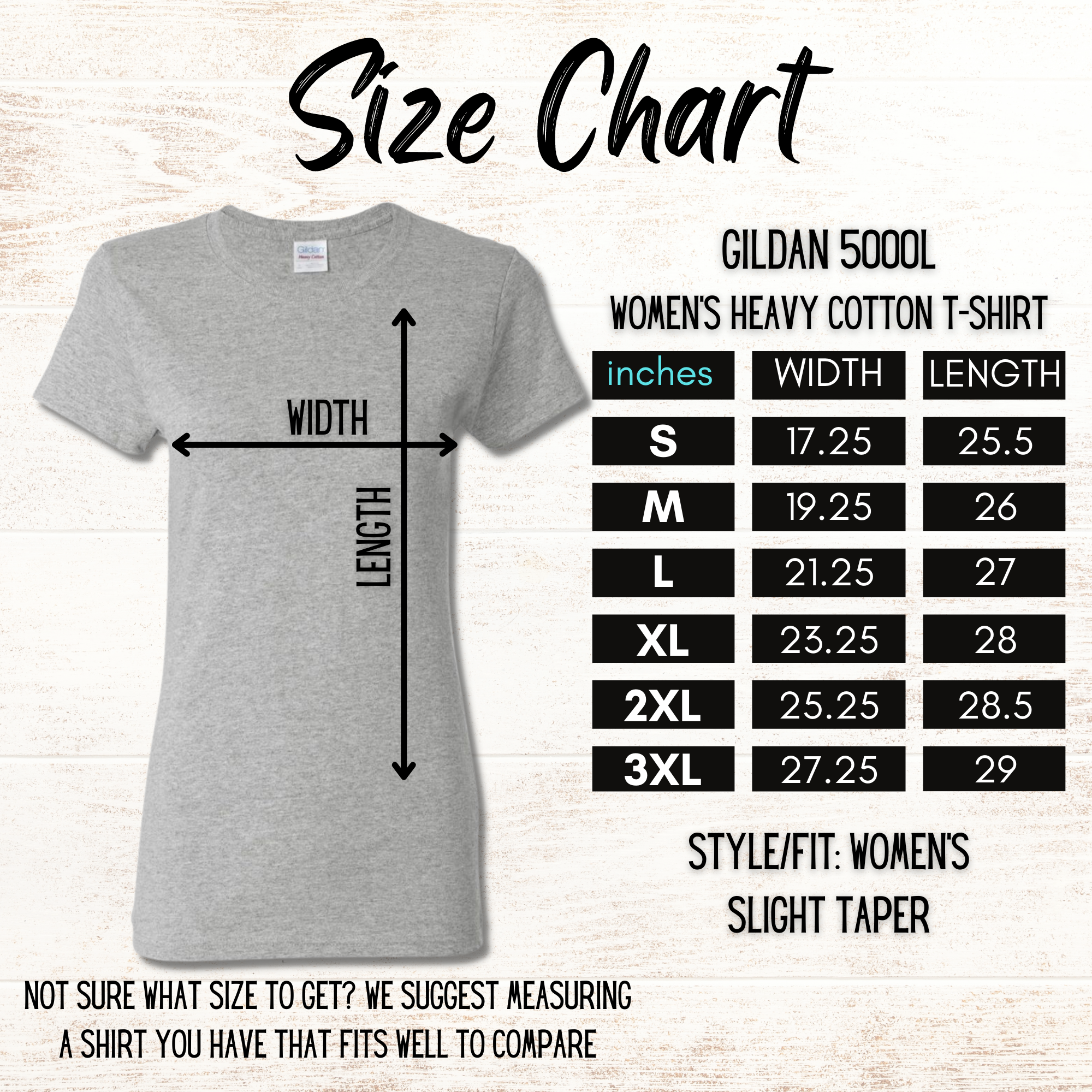 Available in Gildan 5000 Unisex and Gildan Women's Cut 500L